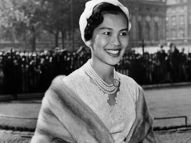 夫である故プミポン前国王ととも1950年代から1960年代にかけて世界各国を公式訪問され、その優雅な姿とファッションセンスで世界のメディアを魅了。