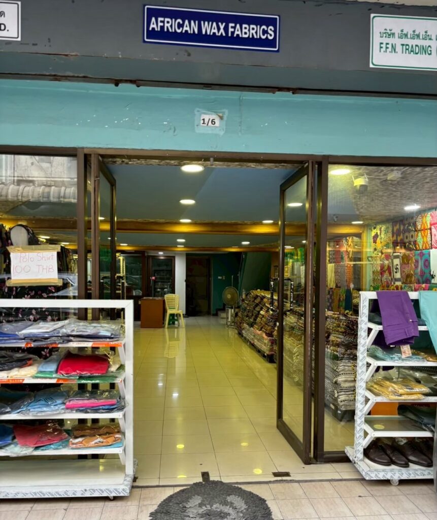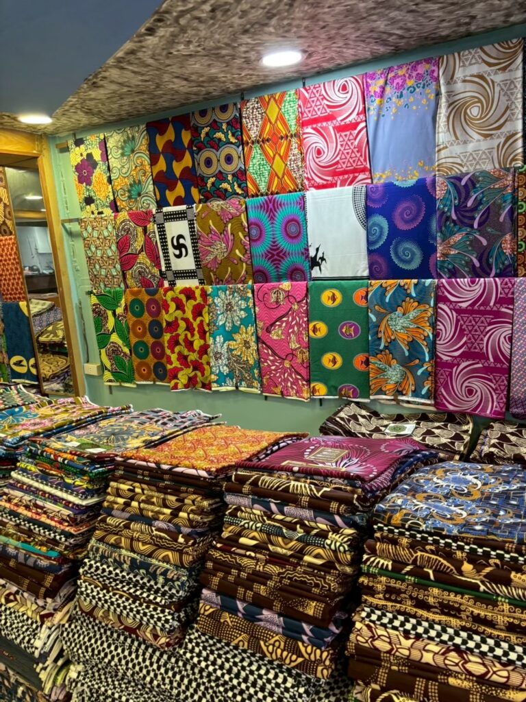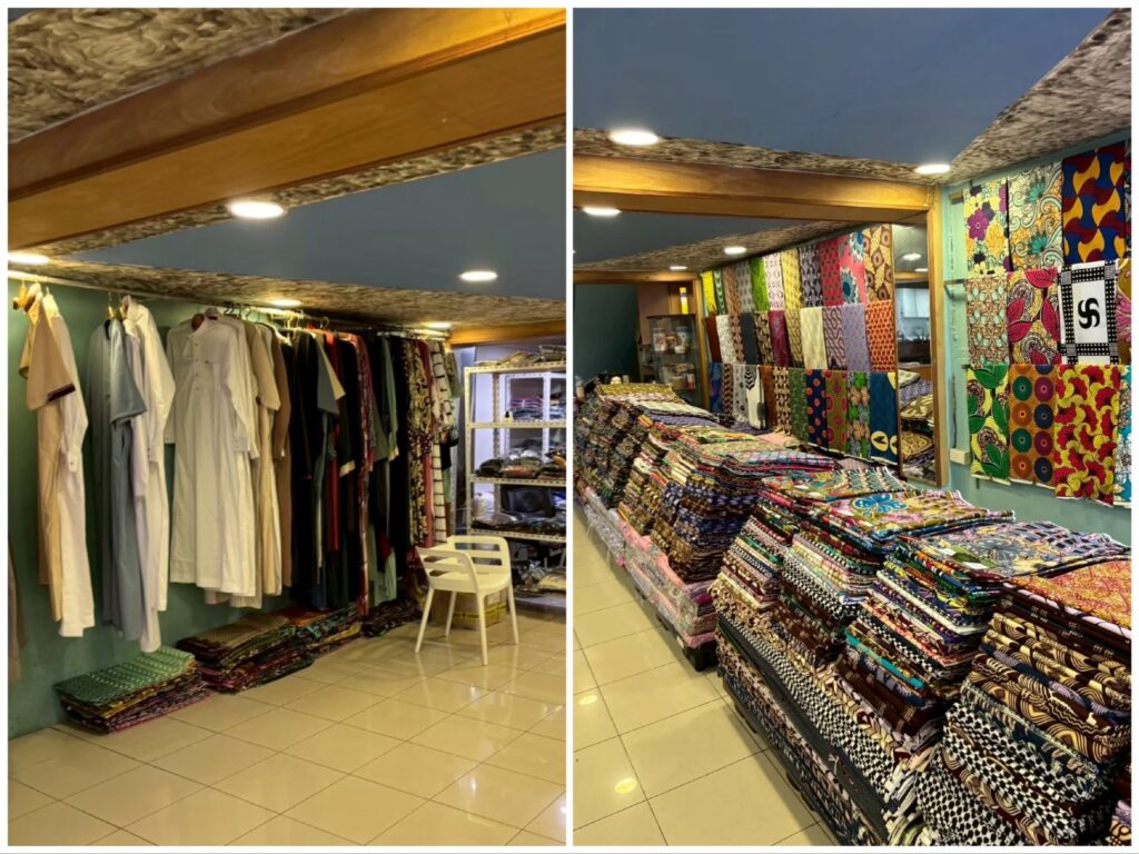 お店は入って右側にアフリカ布、左側は服(男性用?かなり大きい)になってます。