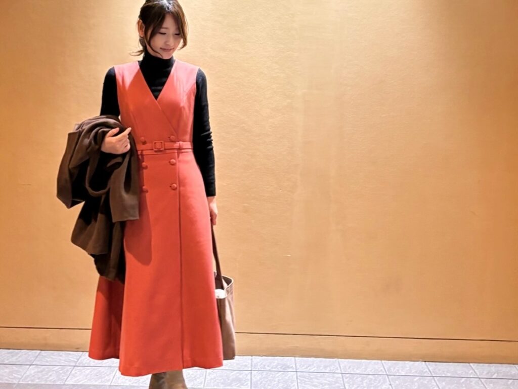 タートルニットとブーツにコートを合わせたら日本の冬でも違和感なく、中に着こめば寒さも大丈夫でした。