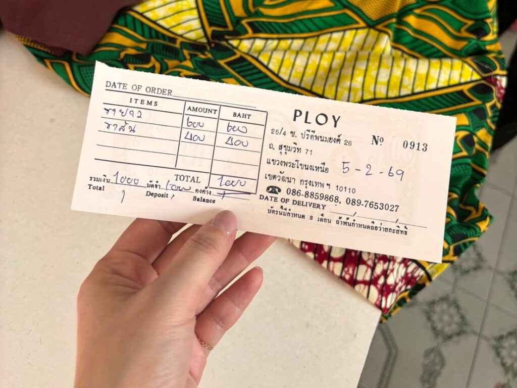 価格は私のパンツで600バーツ、息子のパンツが400バーツ、合計1,000バーツでした。