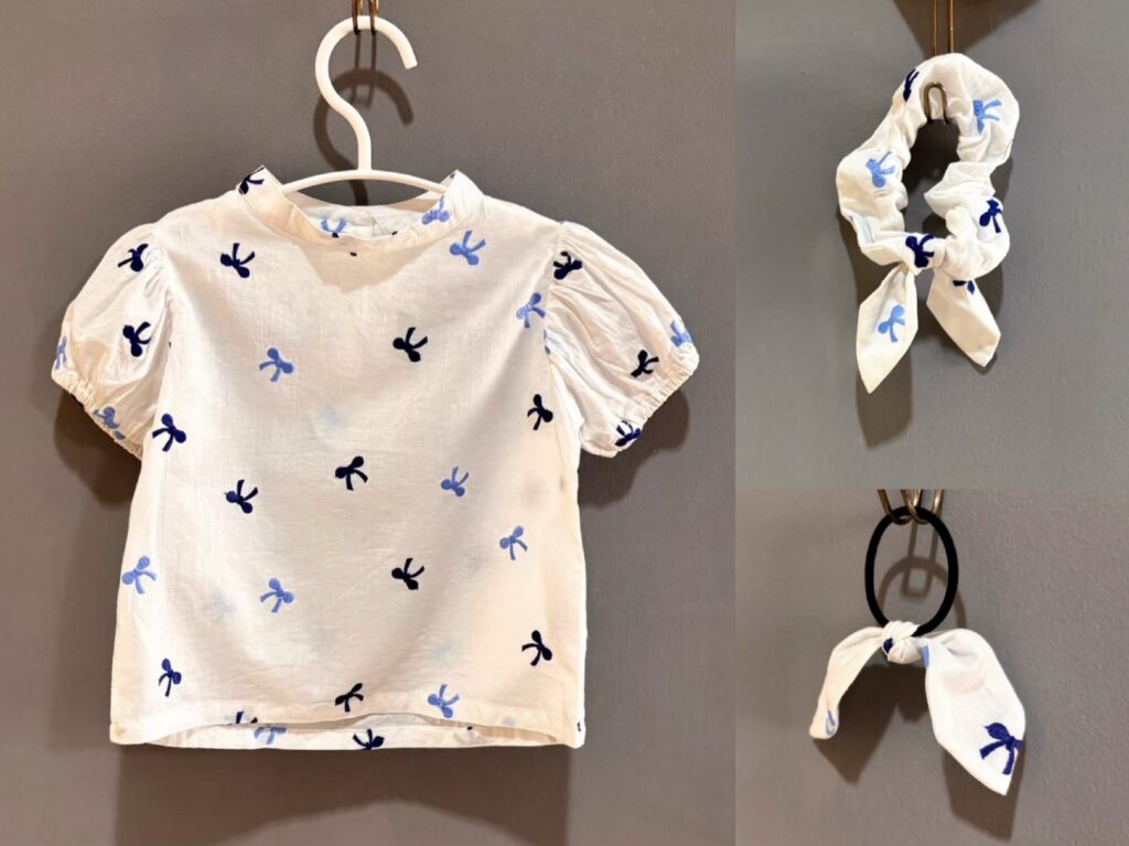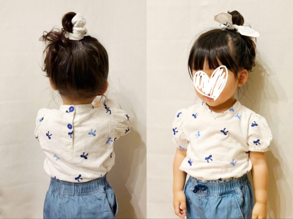 サイズもぴったりで安心しました。シュシュでおだんごしてくれてるのもかわいいし、デニム合わせも可愛い・・尊い。