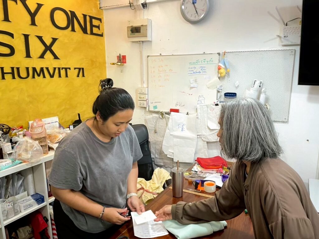 お仕立て代は700バーツ、約3週間後の完成でした。