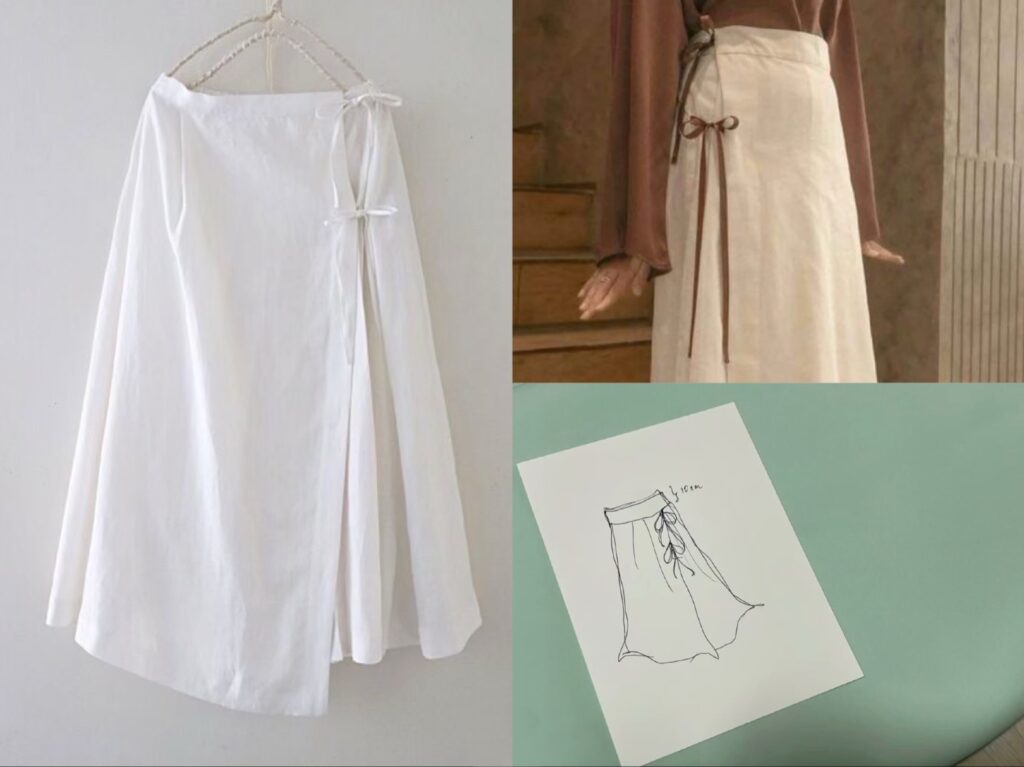 ちょっとフェミニンな気分だったので、写真の感じのリボン付巻スカートで依頼しました。